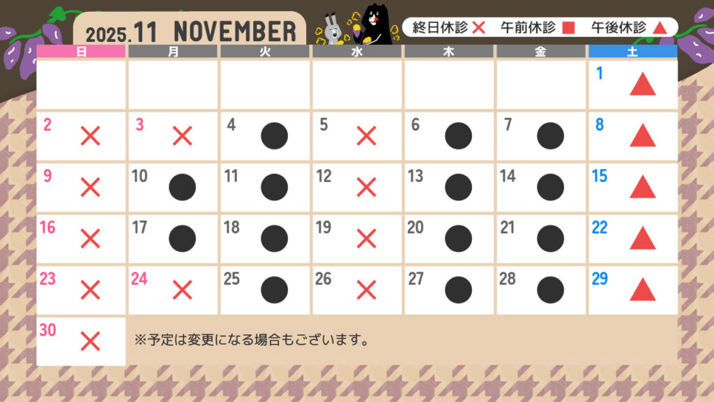 11月 診療カレンダー