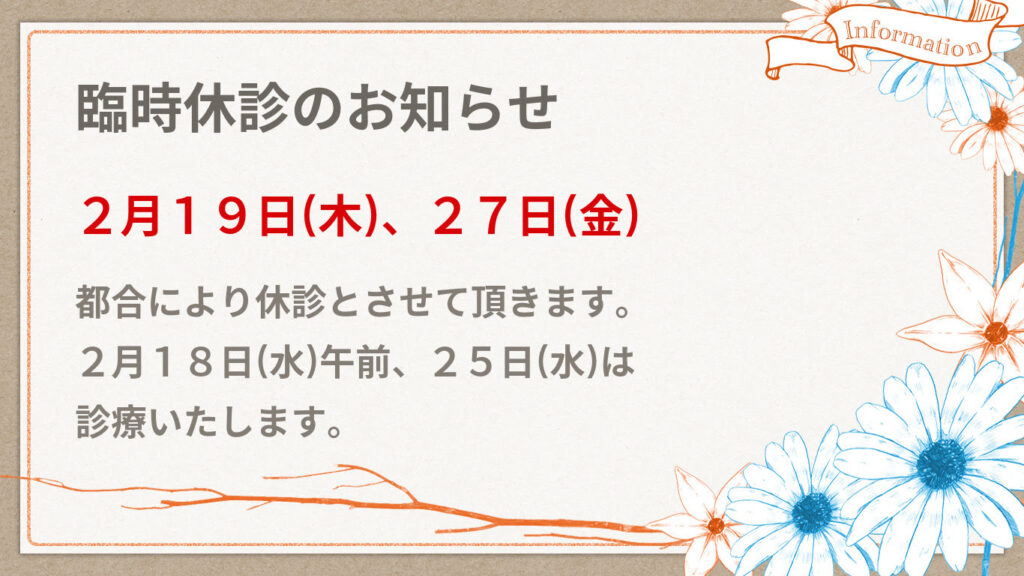 【2月】臨時休診のお知らせ